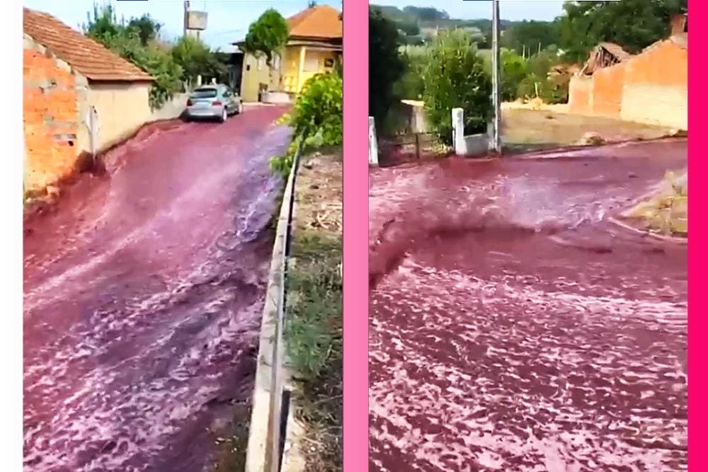 Sembrava uno dei tanti video che il web ci propone, che poco hanno di reale. Invece no. I filmati del fiume di vino rosso che scorre lungo la strada è vero. Secondo quando dichiarato dal Diário de Aveiro, due cisterne di proprietà della Distilleria Levira hanno improvvisamente ceduto, causando la fuoriuscita di 2,2 milioni di litri di vino rosso. Inondando così le strade del piccolo borgo di São Lourenço do Bairro, 30 km a nord di Coimbra. Un fiume di vino rosso è letteralmente fuoriuscito cominciato a scorrere tra le stradine in discesa dell’aldeia, formando una specie di torrente.