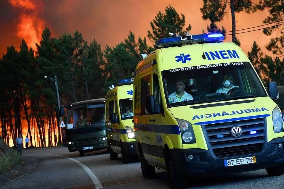 Immagine dell'Incendio nel Nord del Portogallo la foto di alcune ambulanze INEM tra le fiamme del 29 luglio 2025.