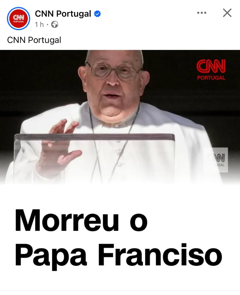 Screeshot di un post social in Portogallo per la morte di Papa Francesco