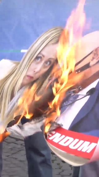 Al corteo di Roma bruciate le immagini di Meloni e Nordio
