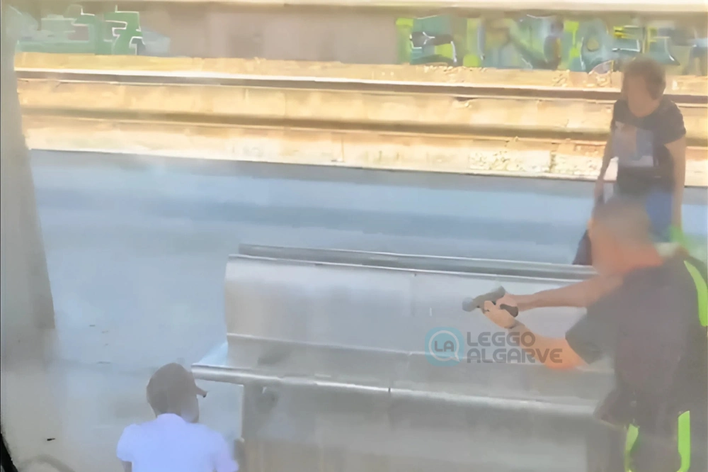 L’agente, costretto a usare la propria arma d’ordinanza come deterrente, ha immobilizzato l’uomo, obbligandolo a stendersi a terra. Subito sono giunti sul posto i rinforzi richiesti dall’agente in borghese. Fortunatamente, nessuno è rimasto ferito. Di seguito Leggo Algarve vi propone il video della parte finale dell’arresto filmato da un passeggero del treno.