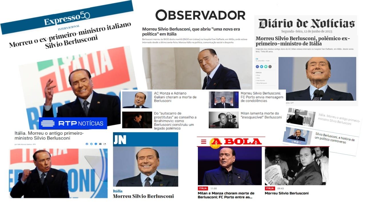 Qualche minuto dopo l’annuncio della morte di Silvio Berlusconi, la notizia è rimbalzata sui siti d’informazione del Portogallo. La prima a dare il lancio è stata la CNN Portugal alle 9.35. Seguito dalla SIC Noticias alle 9.38. Poi via via tutti i siti di notizie portoghesi hanno dato la notizia. Tutti ne raccontano la storia, la carriera politica e sportiva. Raccontando anche delle vicende private del “personaggio chiave della politica italiana”.